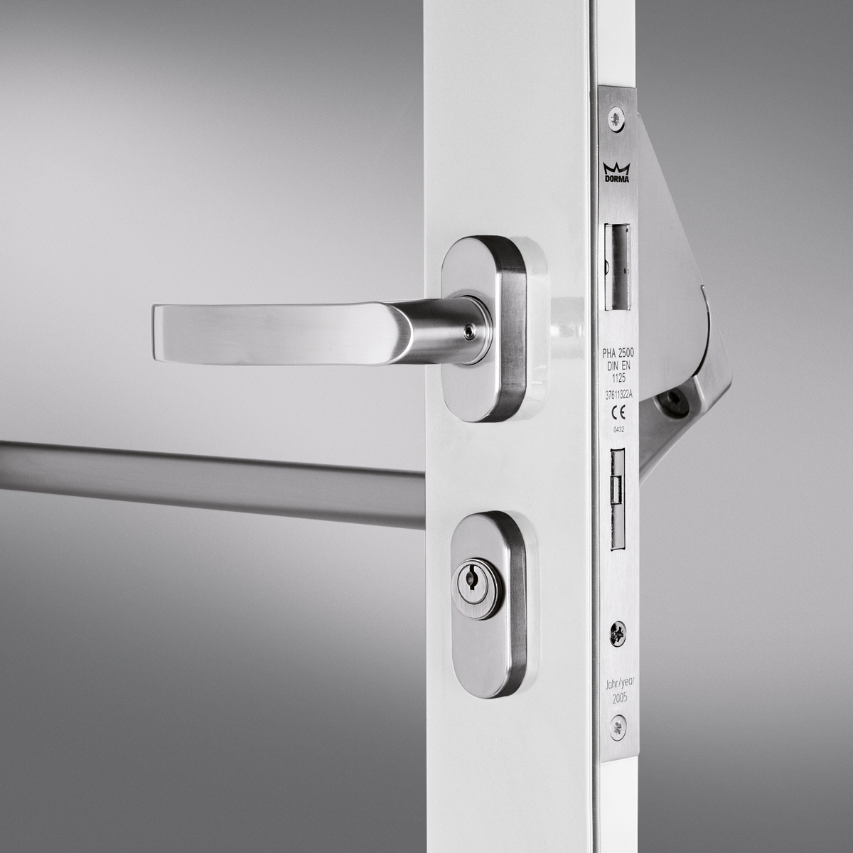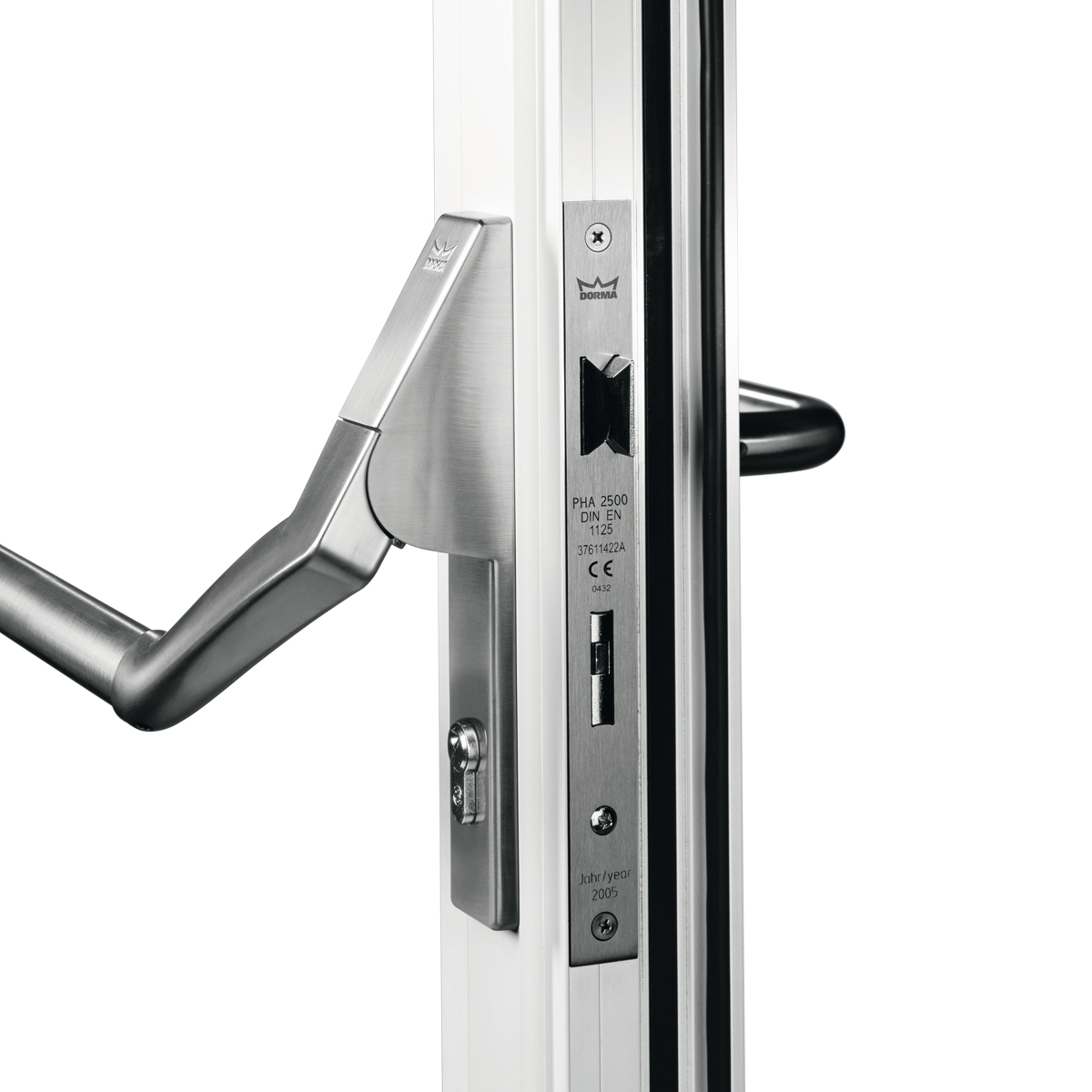 PHA 2500 panik bar serisi, DORMA Premium ve ilgili tamamlayıcı aksesuarlarıyla DORMA iç ve dış çerçeveli kapı uygulamaları için ideal yüksek performanslı bir panik donanım sistemi sunmaktadır. Entegre gömme panik/acil durum kaçış kilidi kapının hem mandal hem kilit diliyle bağlantısına olanak tanır.